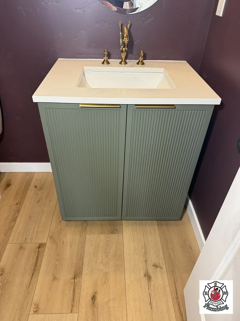 Did you know that RSM Plumbing is not only a licensed plumbing contractor but also holds a General Contractor registration in Idaho? That allows us to help homeowners with complete kitchen and bathroom upgrades as well. For a long-term client in Caldwell, ID, we removed a pedestal sink, installed a new bathroom cabinet, adjusted the base trim to fit properly, and finished the upgrade with a high-fashion polished gold faucet. Small remodel projects like this can make a big difference in both functionality and style.